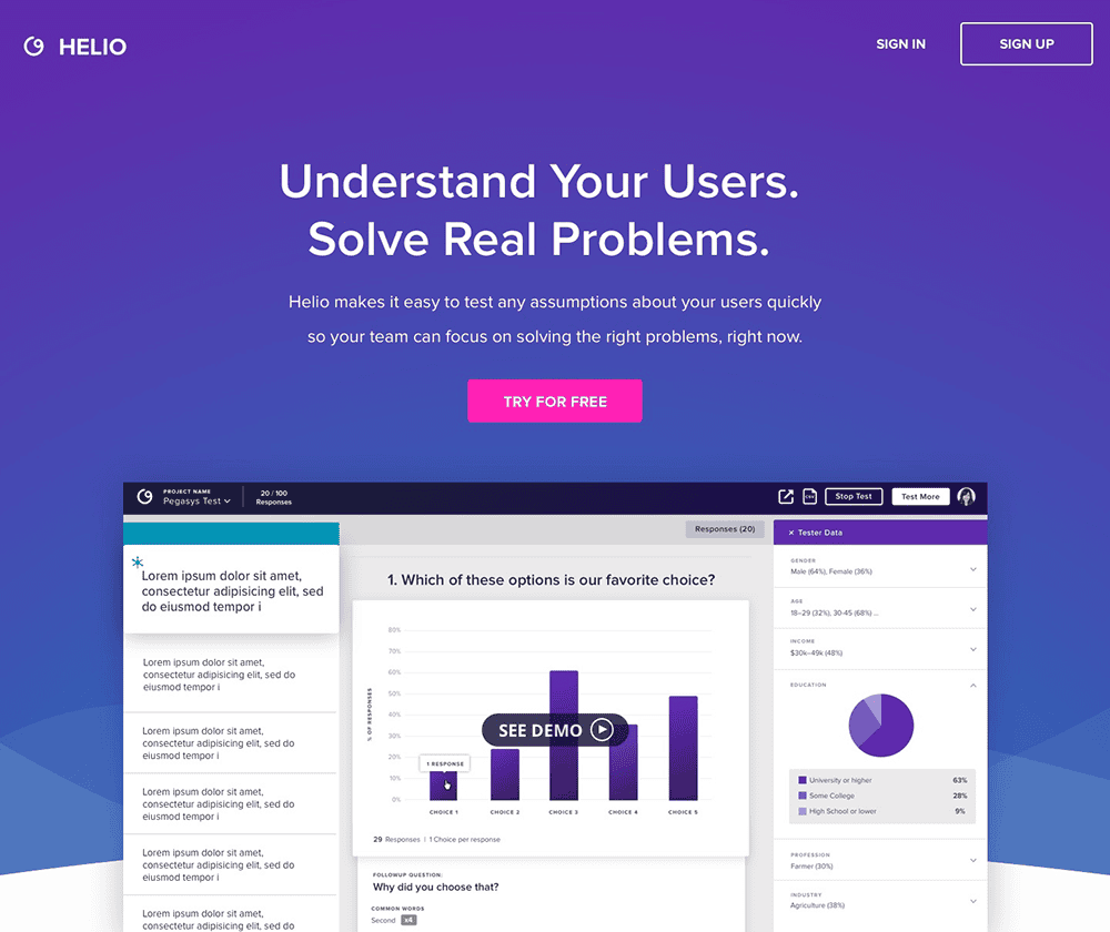 Insights, while all around us, are well camouflaged. To help us uncover and unearth them, we use Helio. Helio allows us to collect the feedback and observations from hundreds of thousands of people around the globe in minutes. Just aim the Helio at your chosen demographic and engage!